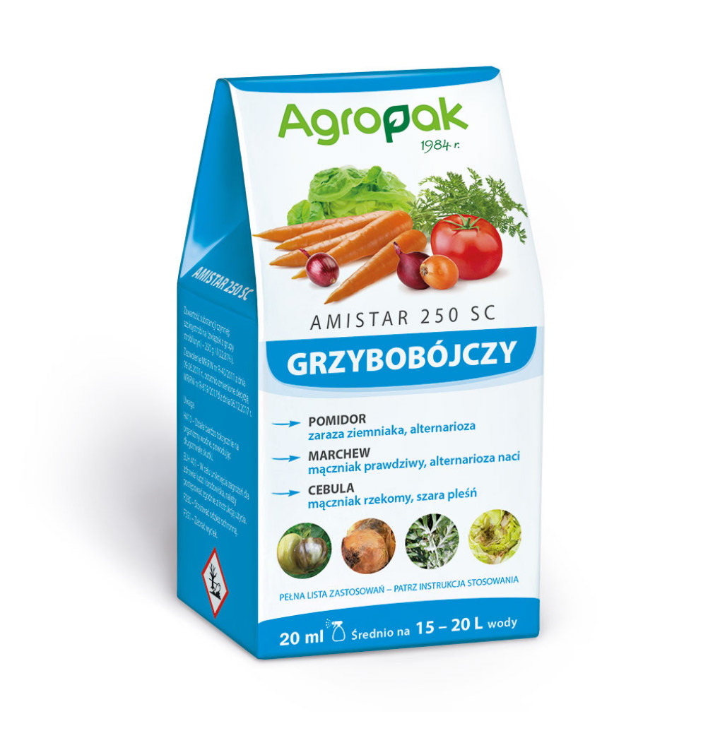 Amistar 250 SC  znany od lat środek ochrony roślin – fungicyd o działaniu wgłębnym i układowym, do stosowania głównie zapobiegawczego w zwalczaniu chorób powodowanych przez grzyby. Skutecznie chroni uprawy warzyw przed szarą pleśnią, alternariozą, mączniakiem prawdziwym i rzekomym, czernią krzyżowych, zgnilizną twardzikową czy rdzą. Produkt ma postać stężonej zawiesiny do rozcieńczania wodą. Zawiera 250 g/L azoksystrobiny, substancji aktywnej, która przemieszcza się wraz z sokami roślinnymi od korzeni po wierzchołek, dzięki temu oddziałuje na patogeny nawet w częściach roślin, na które nie została naniesiona ciecz opryskowa.