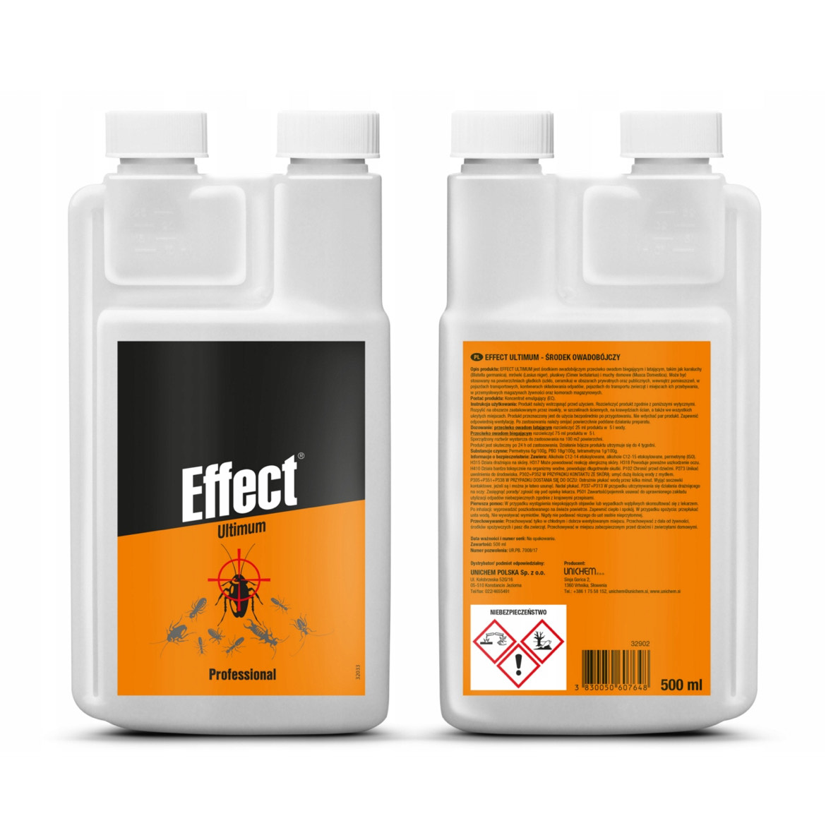 Effect ULTIMUM to środek owadobójczy w postaci koncentratu emulgującego (EC) do zwalczania owadów biegających i latających, takich jak: karaluchy, mrówki, pluskwy i muchy domowe. Produkt przeznaczony do użytku profesjonalnego.