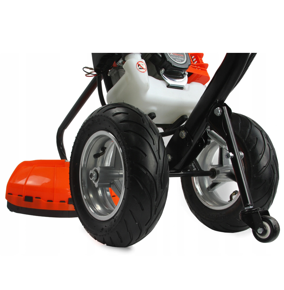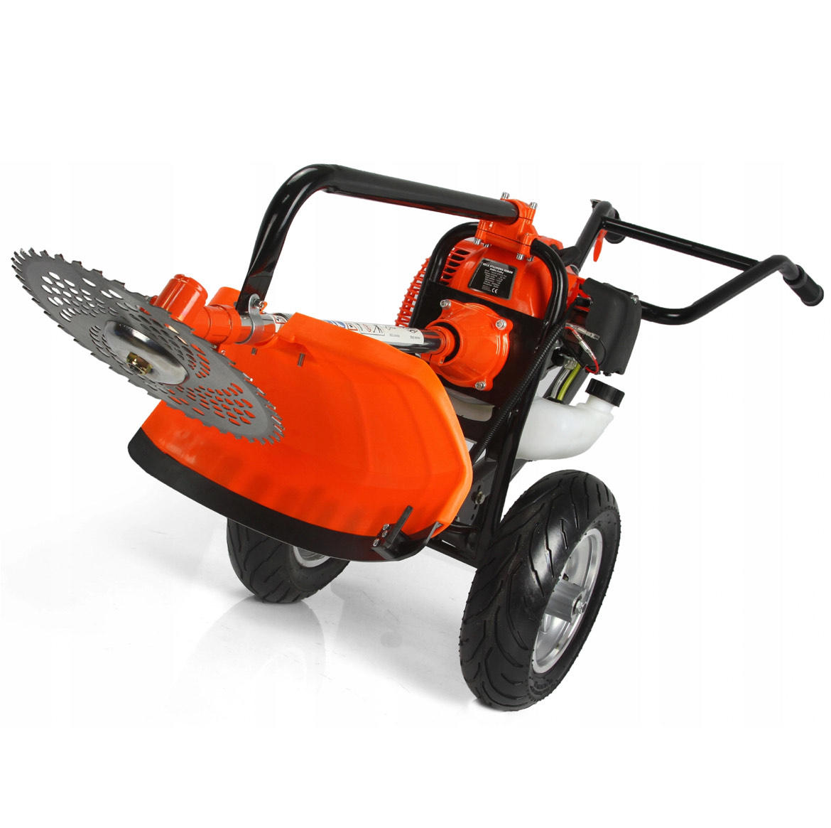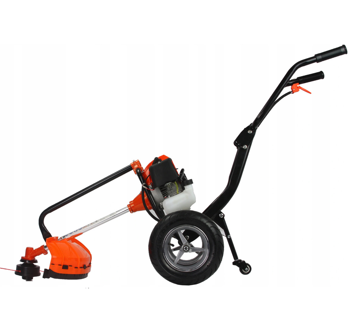 Mobilna kosa ogrodowa DEMON to urządzenie które sprawdzi się na dużych skomplikowanych powierzchniach ogrodowych, zwłaszcza na skarpach, spadkach, wszędzie tam gdzie nie możemy wjechać zwykłymi kosiarkami z silnikami czterosuwowymi. Umieszczenie kosy na wózku pozwala zwiększyć jej wydajność i ograniczyć wysiłek fizyczny. Równocześnie duża moc urządzenia pozwoli dokładnie uporządkować tereny nawet najbardziej zaniedbane i zachwaszczone. Do kosy można założyć tarczę widiową do kos lub szczotkę do usuwania chwastów, mchu. Ten model jest przyjazny dla użytkownika, jego obsługa jest bardzo prosta, a ergonomiczna pozycja pracy gwarantuje, że ramiona i plecy nie będą napięte podczas pracy.