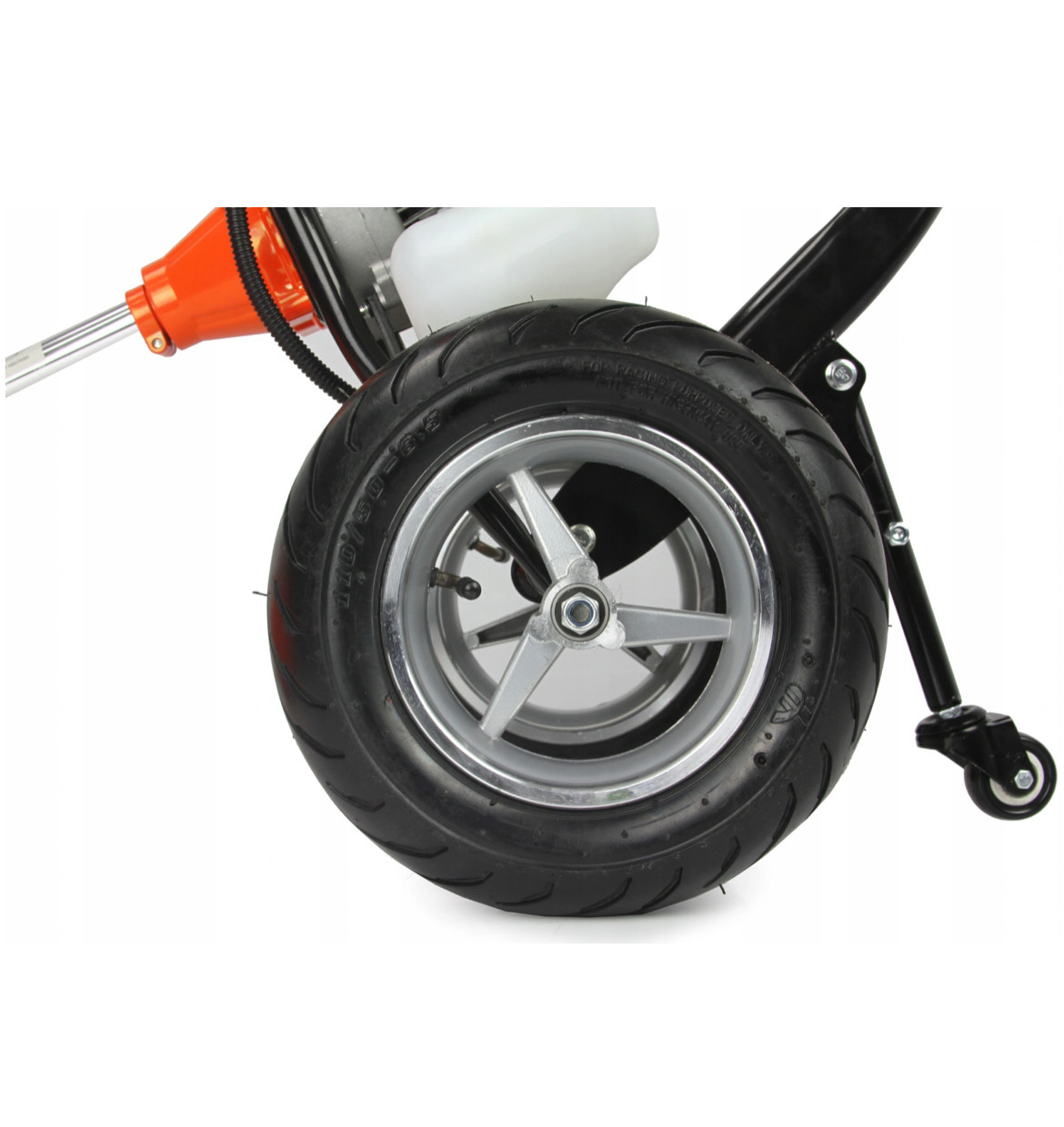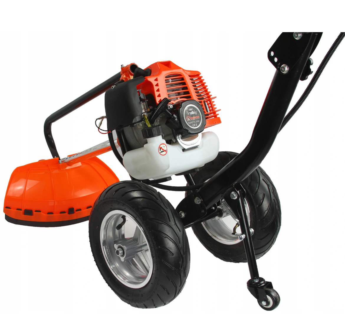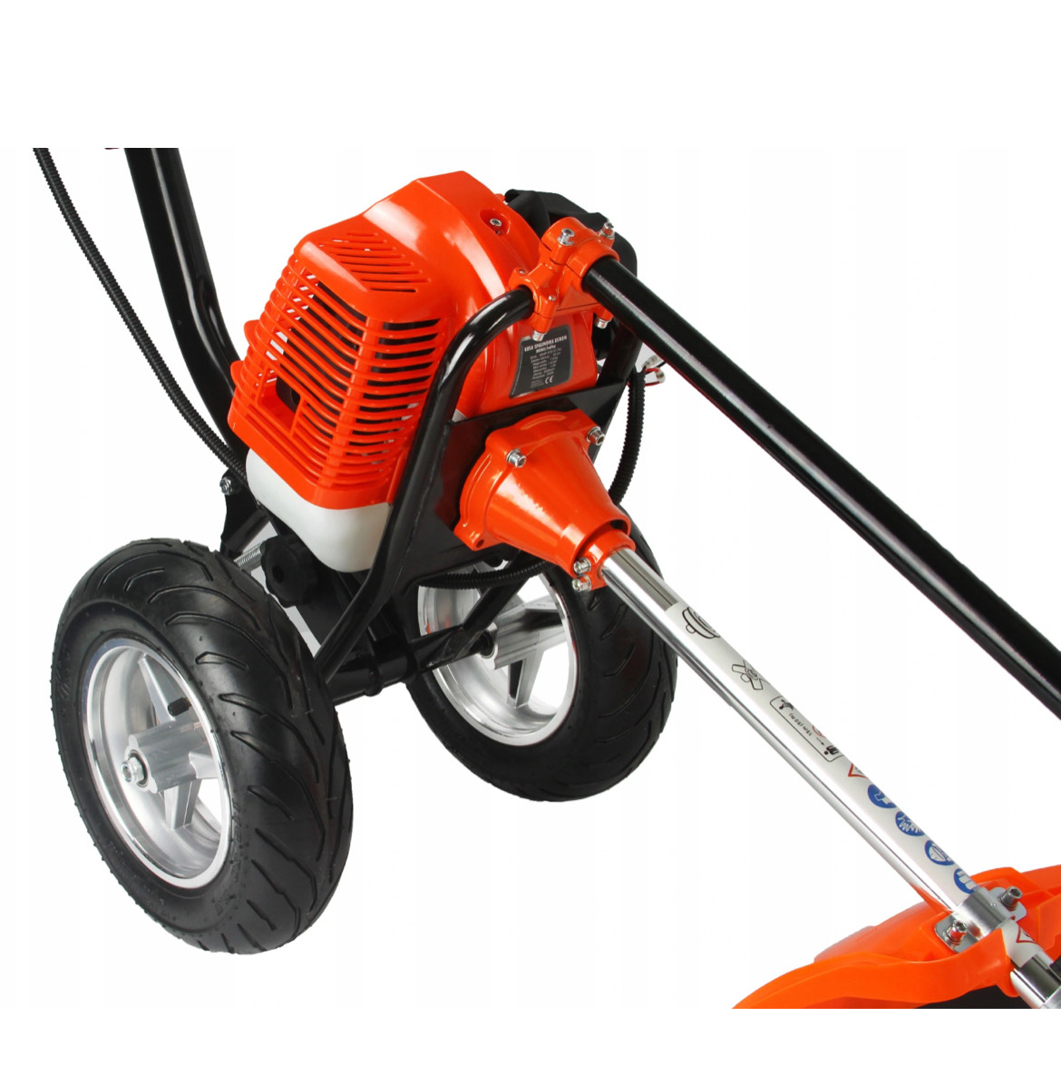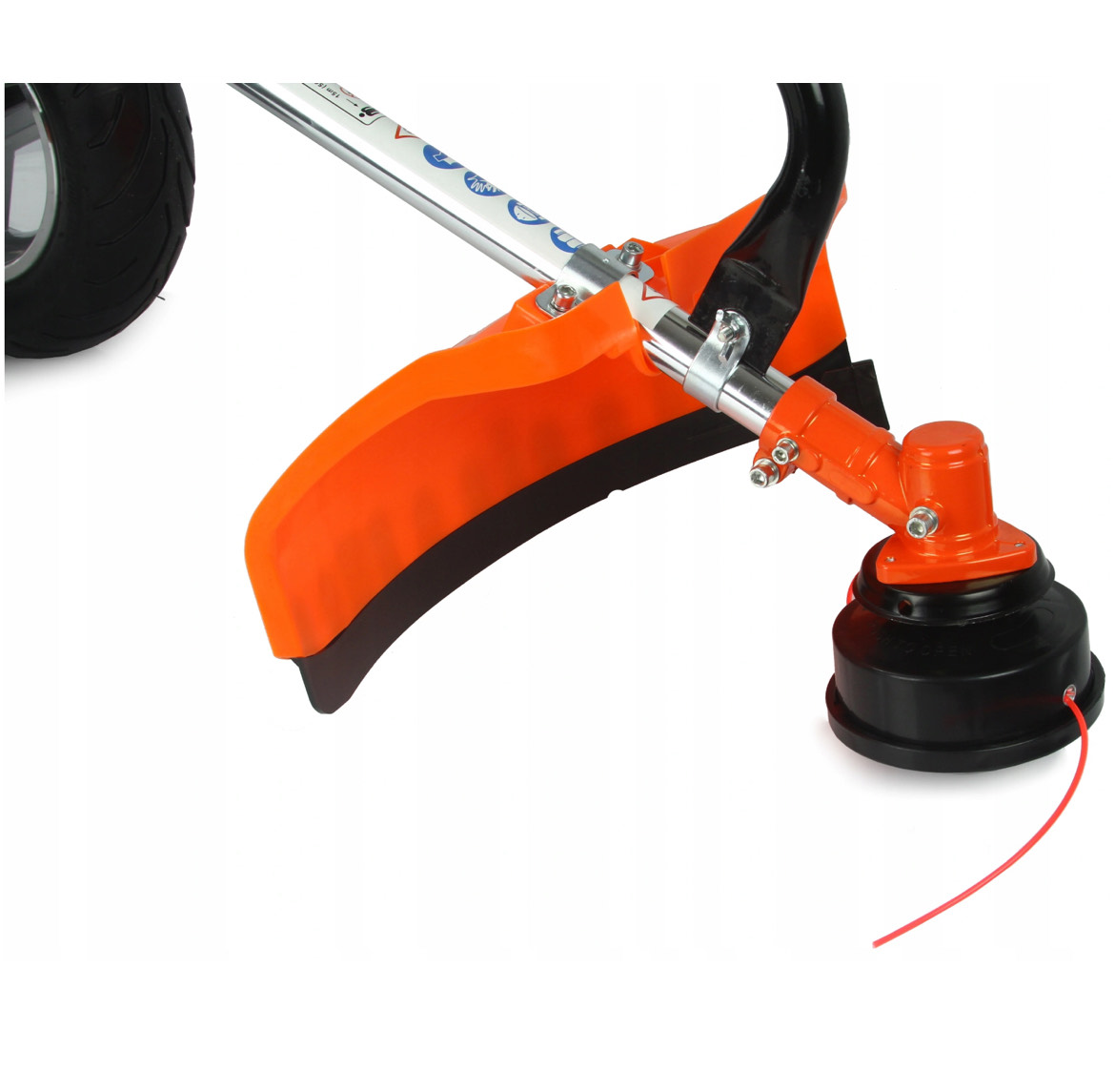 Mobilna kosa ogrodowa DEMON to urządzenie które sprawdzi się na dużych skomplikowanych powierzchniach ogrodowych, zwłaszcza na skarpach, spadkach, wszędzie tam gdzie nie możemy wjechać zwykłymi kosiarkami z silnikami czterosuwowymi. Umieszczenie kosy na wózku pozwala zwiększyć jej wydajność i ograniczyć wysiłek fizyczny. Równocześnie duża moc urządzenia pozwoli dokładnie uporządkować tereny nawet najbardziej zaniedbane i zachwaszczone. Do kosy można założyć tarczę widiową do kos lub szczotkę do usuwania chwastów, mchu. Ten model jest przyjazny dla użytkownika, jego obsługa jest bardzo prosta, a ergonomiczna pozycja pracy gwarantuje, że ramiona i plecy nie będą napięte podczas pracy.