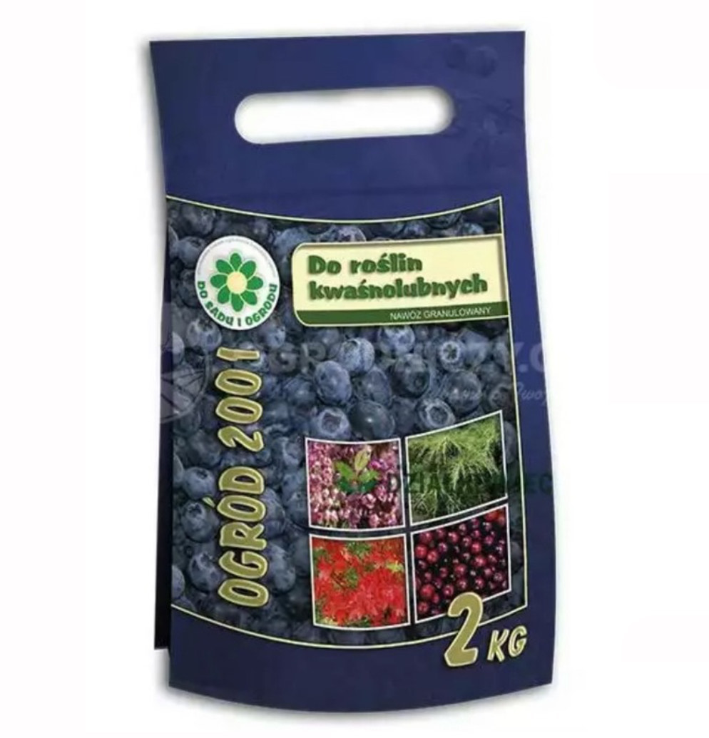 OGRÓD 2001 do roślin kwaśnolubnych jest nawozem o odczynie kwaśnym, zawiera kompletny zestaw makroskładników i mikroelementów pokarmowych, zapewnia optymalne warunki rozwoju i owocowania roślin, poprawia zimotrwałość, granulacja nawozu oraz odpowiednia forma zawartych składników gwarantują długotrwałe działanie.