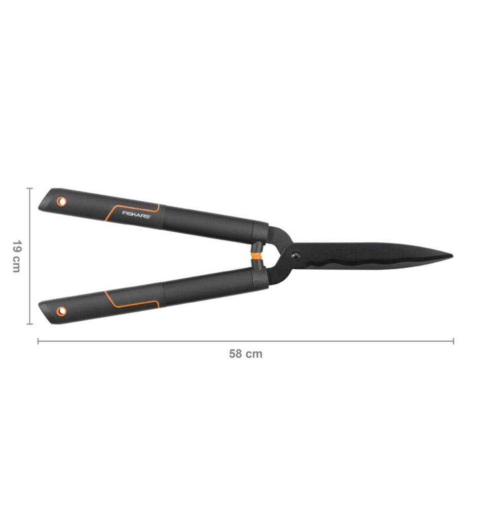 Do cięcia i przycinania żywopłotów. Wygodne wytrzymałe rączki wykonane z tworzywa wzmocnionego włóknem szklanym PPGF. Ostrza z hartowanej stali pokryte nieprzywieralną powłoką dla zachowania czystego cięcia.