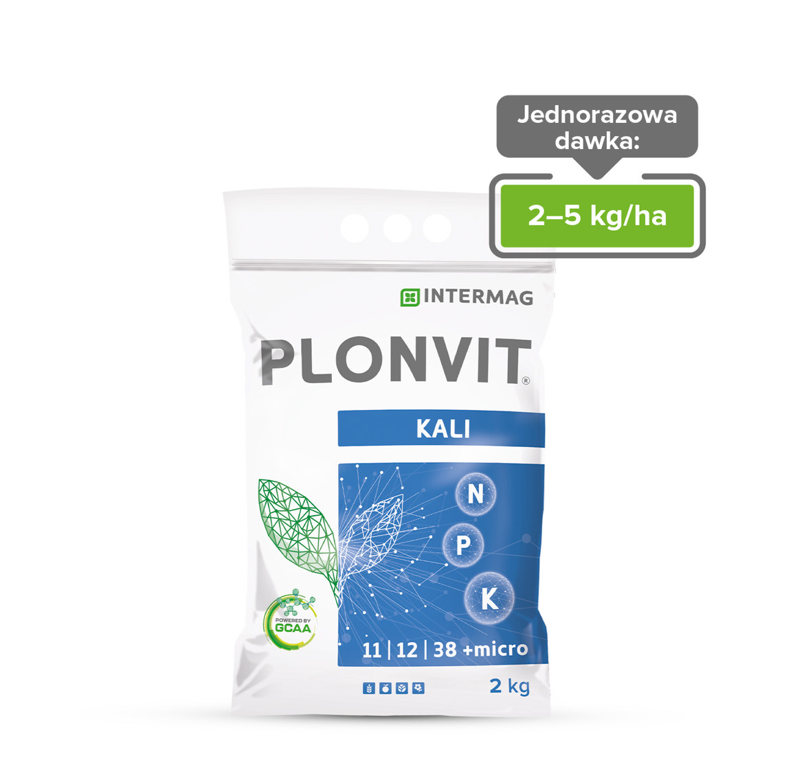 Plonvit Kali 11/12/38 + micro to nawóz NPK w składzie mikroelementy, stosowany dolistnie oraz w fertygacji. Zalecany w okresie dużego zapotrzebowania roślin na potas – w czasie intensywnego wzrostu , rozwoju, kwitnienia, oraz kształtowania plonu, jak również w czasie deficytu wody oraz w okresach niższej temperatury. Stosowany w uprawach rolniczych, sadowniczych oraz na plantacjach warzyw.