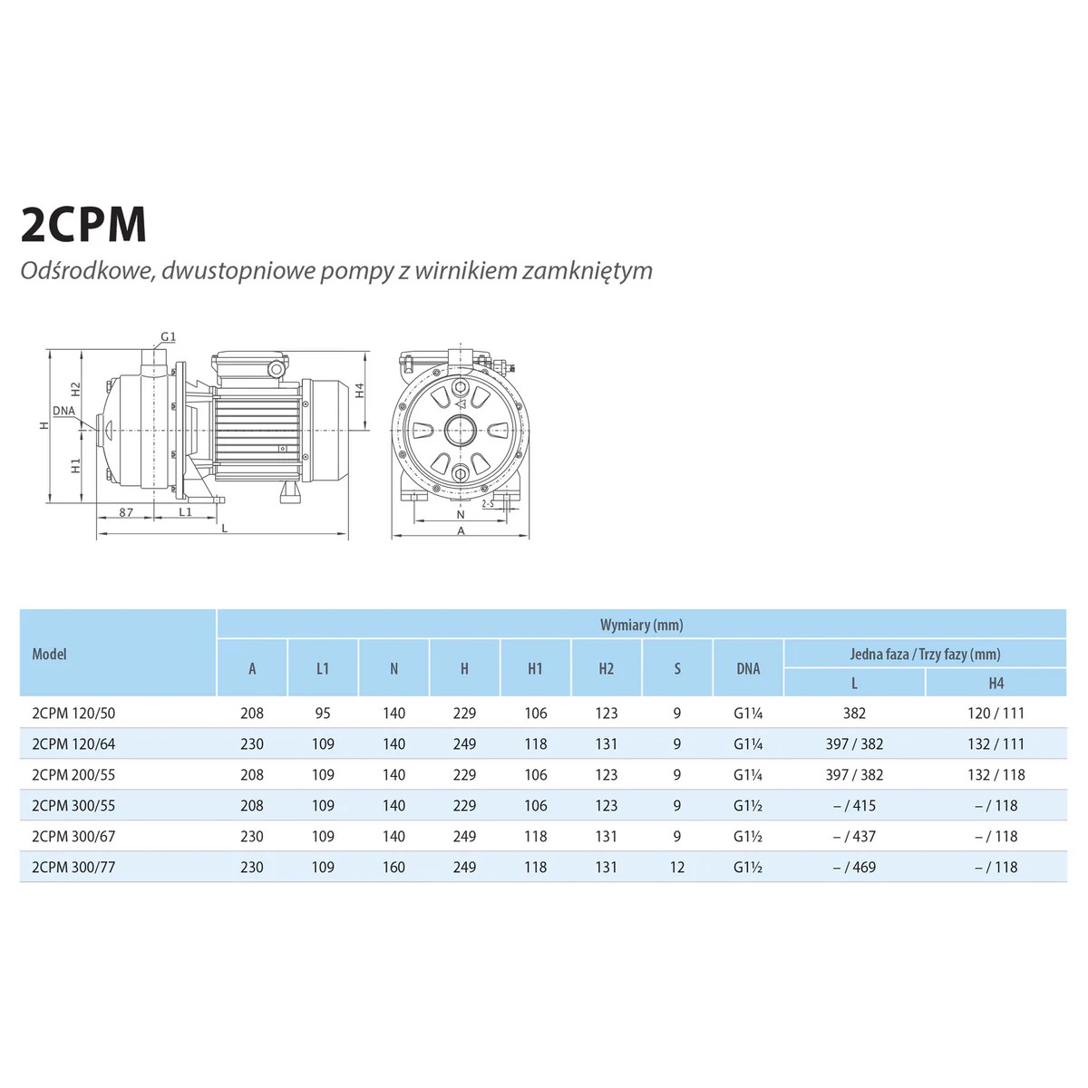 Pompa hydroforowa przemysłowa 2CPM 120/50 (0,9 kW, 230 V) IBO