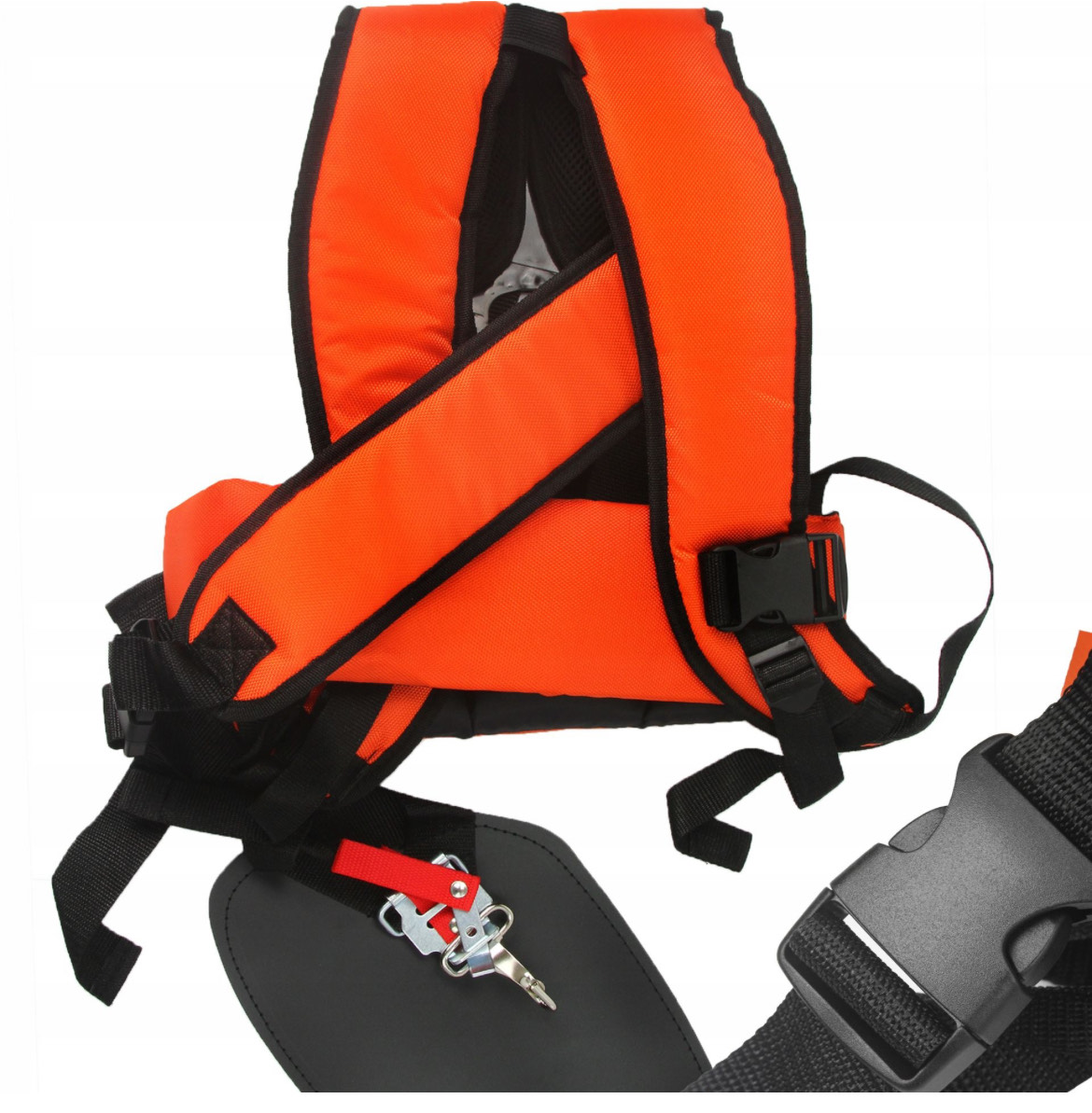 Solidne i komfortowe szelki dwuramienne ze stabilizacją wokół brzucha. Znacząco poprawiają komfort nawet podczas długiej pracy przy koszeniu. Zapewniają pełną swobodę ruchów oraz zmniejszają zmęczenie pleców. Od wewnątrz specjalna miękka gąbka zwiększająca komfort do maksimum, sprawiająca, że szelki nie wbijają nam się w plecy podczas nawet długich prac.