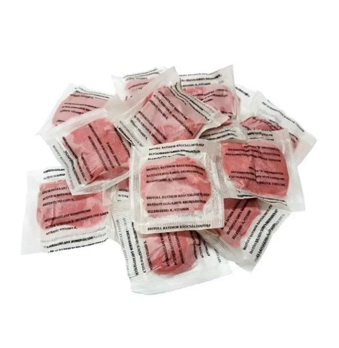 Preparat w postaci pasty w saszetkach łatwych do przegryzienia przez myszy i szczury.