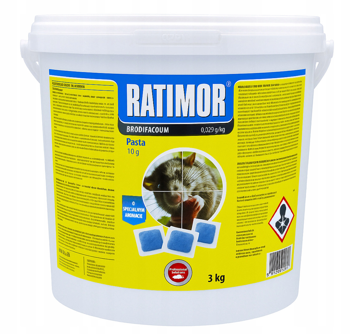 Trutka na myszy i szczury Ratimor w postaci pasty to szybki i skuteczny sposób na zwalczanie szczurów, myszy oraz innych gryzoni. Zawiera silną substancję czynną brodifakum oraz Bitrex, która zapobiega przypadkowemu spożyciu przez zwierzęta domowe i dzieci. Trutka jest wzbogacona atraktantami smakowymi, które są bardziej atrakcyjne dla gryzoni niż naturalne pożywienie. Działa szybko, powodując zaburzenia krzepnięcia krwi, a gryzonie giną w ciągu kilku dni, nie wzbudzając nieufności innych osobników.