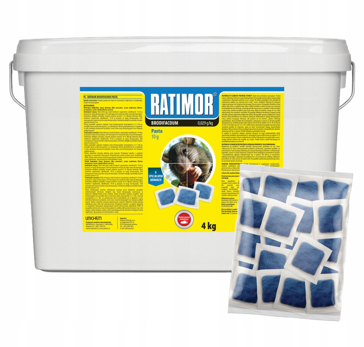 Trutka na myszy i szczury Ratimor w postaci pasty to szybki i skuteczny sposób na zwalczanie szczurów, myszy oraz innych gryzoni. Zawiera silną substancję czynną brodifakum oraz Bitrex, która zapobiega przypadkowemu spożyciu przez zwierzęta domowe i dzieci. Trutka jest wzbogacona atraktantami smakowymi, które są bardziej atrakcyjne dla gryzoni niż naturalne pożywienie. Działa szybko, powodując zaburzenia krzepnięcia krwi, a gryzonie giną w ciągu kilku dni, nie wzbudzając nieufności innych osobników.