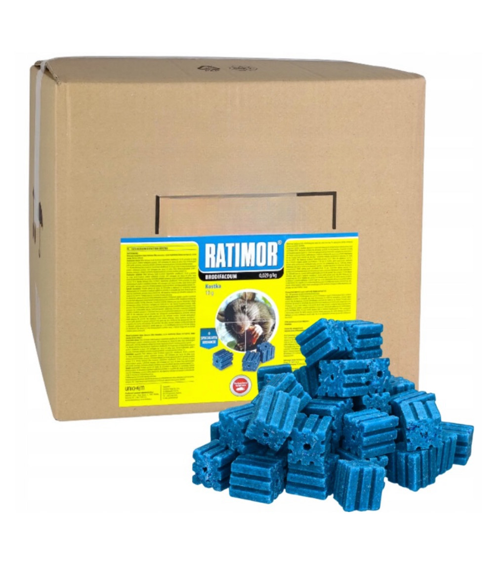 Trutka na myszy i szczury Ratimor w postaci kostki 20g to skuteczny środek gryzoniobójczy, popularny w całej Europie. Jest szczególnie skuteczny przeciwko szczurzym szczurom, myszom, nornicom, kretom i kunom. Zawiera brodifakum – jedną z najsilniejszych substancji czynnych, oraz Bitrex, który zapobiega przypadkowemu spożyciu przez dzieci i zwierzęta domowe. Trutka w formie kostek woskowych o wadze 20g jest wzbogacona o atraktanty zwiększające jej atrakcyjność dla gryzoni, co sprawia, że jest skuteczniejsza niż zwykłe pokarmy.