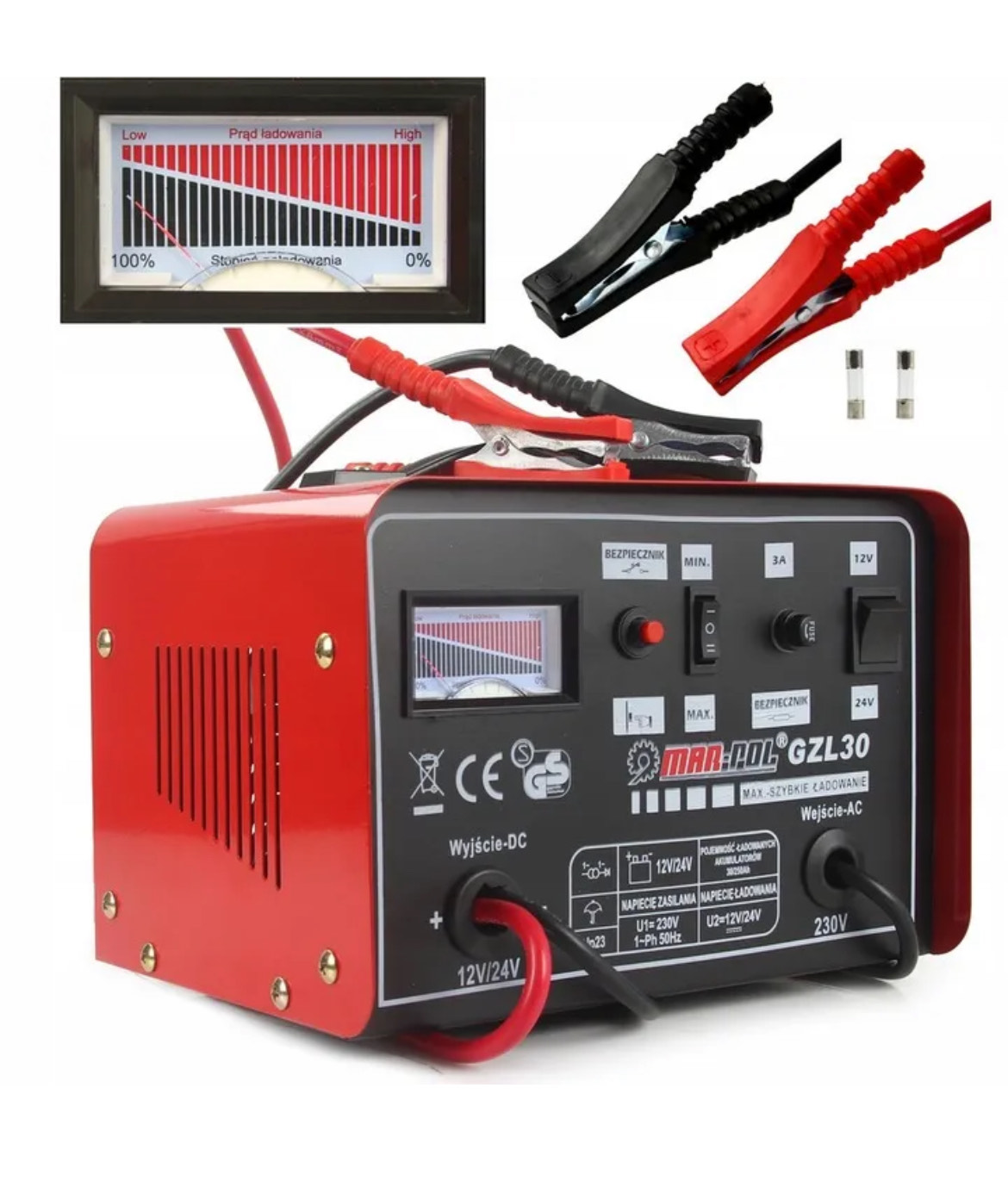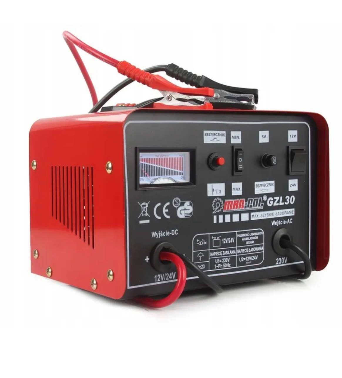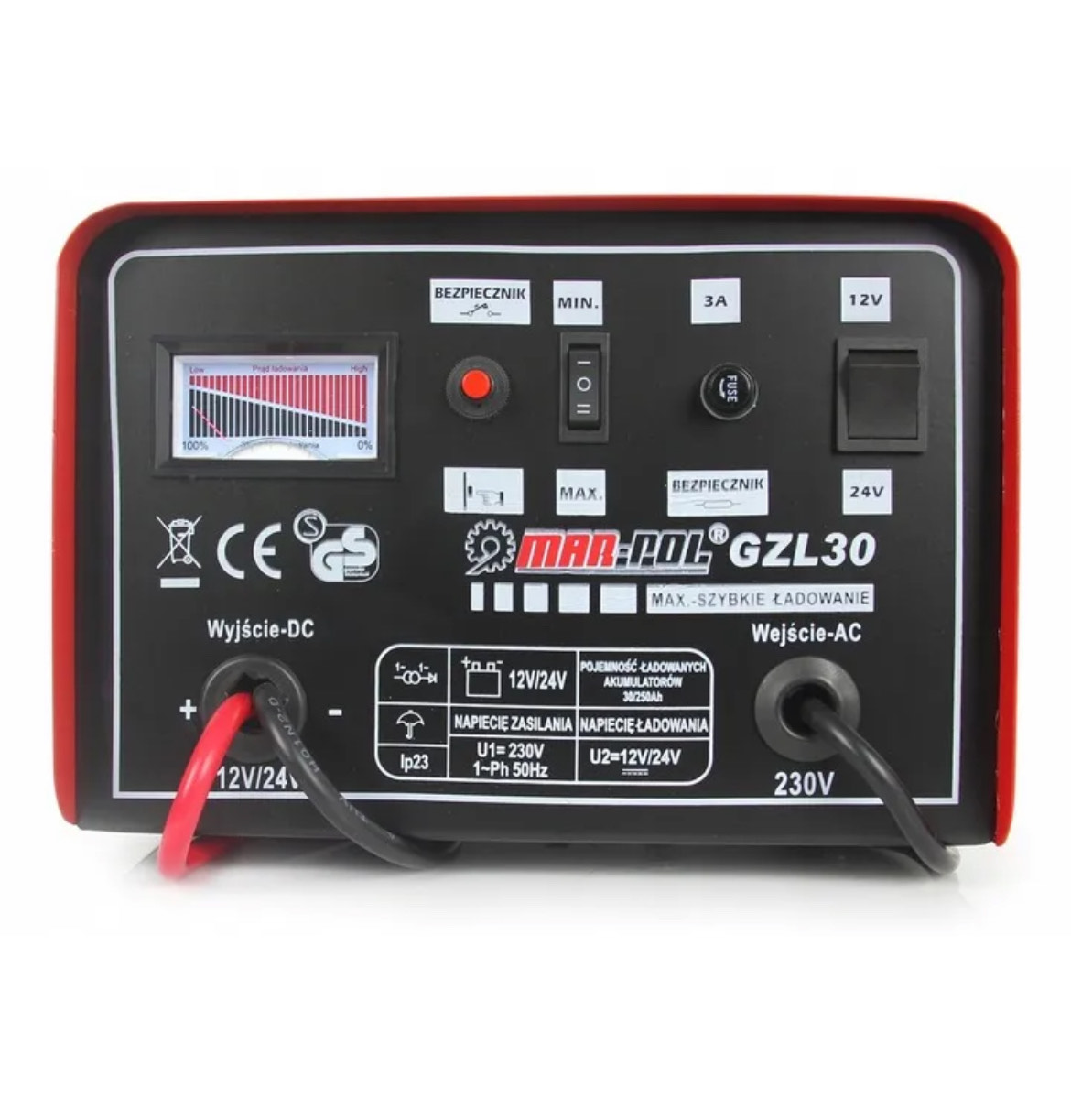 Wysokiej jakości prostownik GZL-30 firmy MAR-POL zapewnia bezproblemowe ładowanie akumulatorów ołowiowo-kwasowych o napięciu 12V i 24V oraz pojemności od 30Ah do 250Ah. Wyposażony w funkcję szybkiego ładowania FAST CHARGE, umożliwia błyskawiczne przywrócenie pełnej sprawności akumulatora.